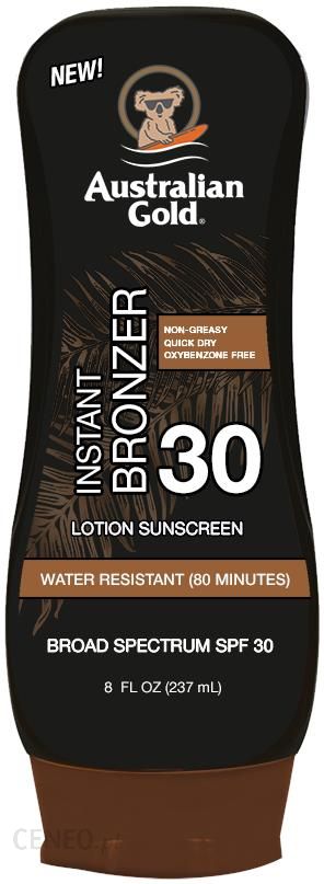 Balsam przeciwsłoneczny Australian Gold SPF 30 z naturalnymi ekstraktami brązującymi doskonale chroni przed promieniowaniem UVA i UVB. Ponadto szybko nadaje skórze naturalnie wyglądającą, ciemną opaleniznę i gwarantuje optymalną pielęgnację skóry. Naturalne składniki brązujące (m.in. ekstrakty z kawy Kona) sprawią, że również pod gołym niebem wyjątkowo szybko się opalisz. Ekstrakty ze śliwki Kakadu (najbogatsze źródło witaminy C), olejek z drzewa herbacianego, olej z nasion słonecznika, aloes, witamina E, masło kakaowego i allantoina maksymalnie nawilżają, regenerują i pielęgnują skórę. A zapach? Jest fantastyczny! Poczujesz się naprawdę jak na wakacjach.
