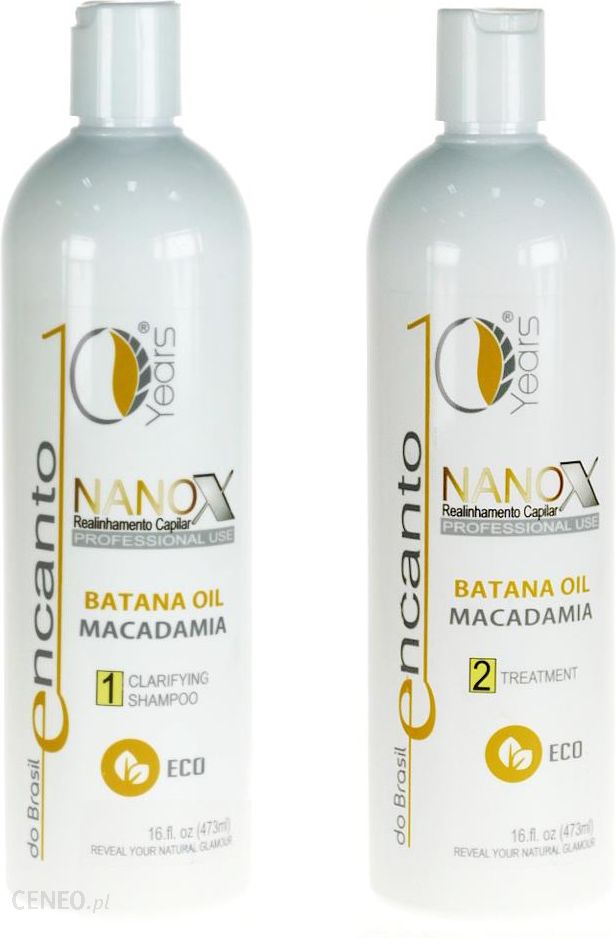 Poznaj niesamowity, skuteczny i zachwycający zestaw do keratynowego prostowania włosów marki Encanto. Te dwa produkty z serii Nanox – stosowane w określony sposób jeden po drugim – sprawią, że puszące się, falowane i trudne do ujarzmienia pasma staną się jedwabiście gładkie, sypkie, „lejące się” i urzekająco lśniące. Efekt utrzymuje się nawet 4 miesiące!W skład zestawu do keratynowego prostowania włosów Encanto Nanox wchodzą:• szampon przygotowujący włosy do zabiegu – 473ml• keratyna do prostowania i rekonstrukcji włosów – 473mlZabieg keratynowego prostowania włosów przy użyciu skutecznych i cenionych na całym świecie kosmetyków Encanto można z powodzeniem wykonać w domowym zaciszu. Pamiętaj jednak, że najlepsze efekty uzyskasz, gdy podczas prostowania włosów i aplikacji keratyny i odżywki będzie Ci asystować inna osoba – wtedy rezultaty będą o wiele lepsze.Bardzo ważne!Po zabiegu keratynowego prostowania bardzo ważna jest codzienna pielęgnacja. Tylko zastosowanie odpowiednich kosmetyków przedłuży efekt prostowania i pozwoli zachwycać się gładkimi pasmami przez wiele tygodni.Polecanymi produktami po prostowaniu są te pozbawione SLS/SLES i soli. Polecamy szampon Encanto Organic Daily Aloe oraz odżywkę Encanto Organic Daily Aloe.