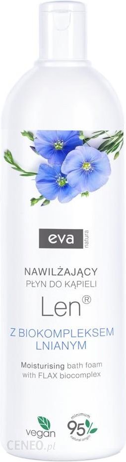 Płyn do kąpieli Len, Eva Natura, 750 mlPłyn do kąpieli Len marki Eva Natura to nawilżająca formuła oparta na biokompleksie lnianym, niezwykle cenionym ze względu na swe właściwości kojące, łagodzące i odżywcze. Delikatne składniki pielęgnacyjne nadają skórze miękkości i gładkości, odprężają i relaksują, na długo pozostawiając subtelny zapach.Kąpiel z dodatkiem lnianego płynu do kąpieli przyjemnie rozgrzewa ciało, pozytywnie wpływając na dobre samopoczucie!Cechy produktu:płyn do kąpieli z biokompleksem lnianym,przeznaczony do kąpieli pianowej,zawiera min. 95% składników pochodzenia naturalnego,jest kosmetykiem wegańskim,wykazuje działanie nawilżające,odpręża, relaksuje.